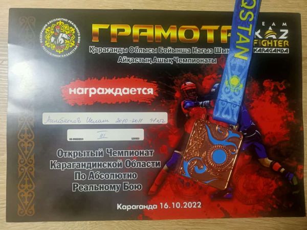 Поздравляем ученика 6"Г" класса Аимбетова Ислама с очередным достижением и желаем новых побед!!!