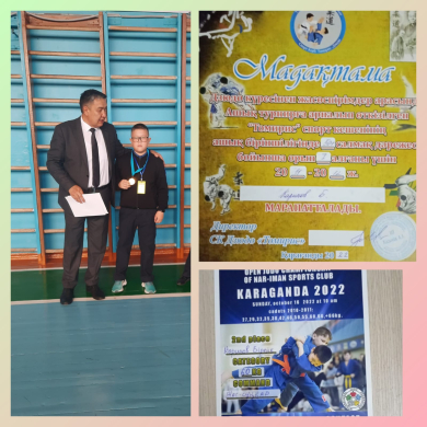 Дзюдо күресінен жасөспірімдер арасында  Ашық турнирға арналып өткізілген "Томирис" спорт кешенінің ашық біріншілігінде І орын алғаны үшін 6 "А" сынып оқушысы Карипов Бірлік…