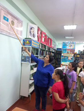 Для учащихся пришкольного оздоровительного лагеря библиотека организовала беседу у выставки "Символы независимости"