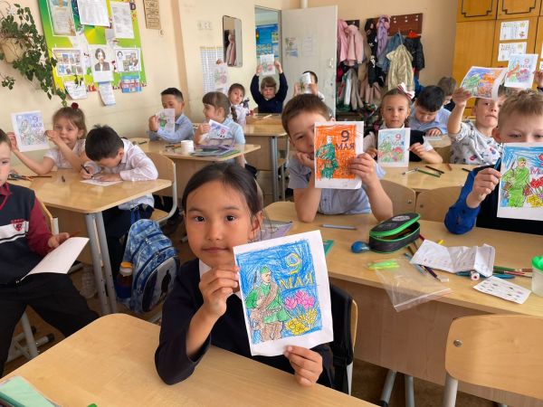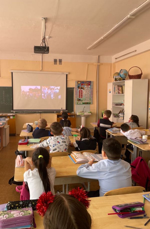 4 Ә сыныбында "Ер есімі- ел есінде" атты ерлік сабағы өтті. Оқушылар Ұлы Отан соғысына қатысқан аталары жайлы естелік әңгімелер айтты