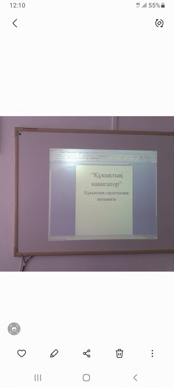 8 ақпан Құқықтық білім апталығы аясында 4 А сыныпта "Құқық сақтау орны, құжаттар, сенім телефоны" атты сынып сағаты өтті. Шара барысында түсіндірме жұмыстар жүргізілді.