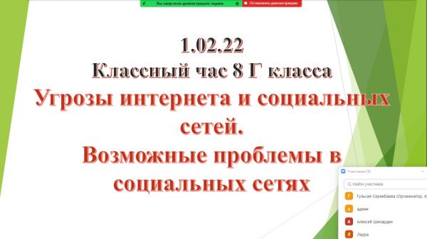 Классный час 8 Г класса на тему: Угрозы интернета и социальных сетей. Возможные проблемы в социальных сетях.