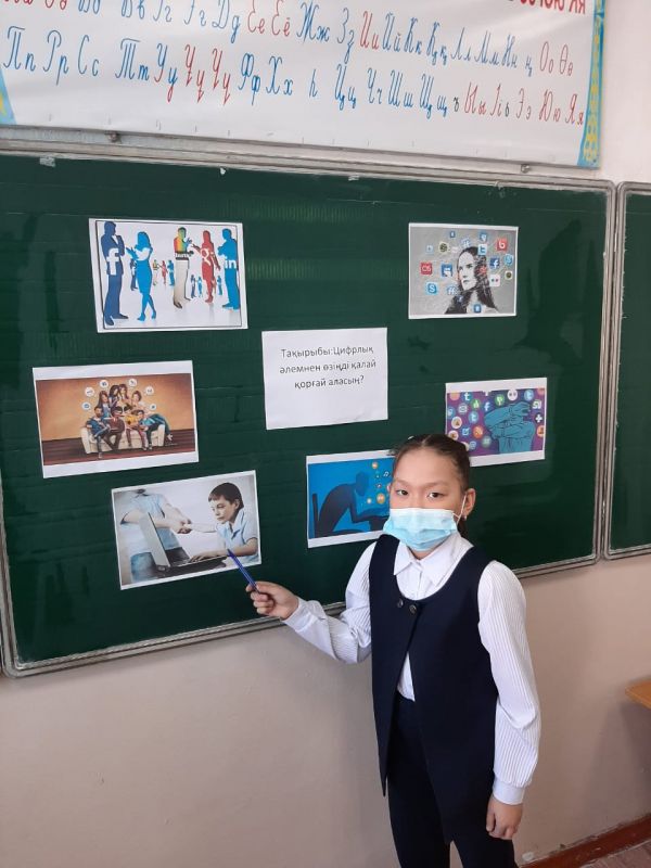 "Цифрлы сауаттылық" апталығы аясында 3а сынып оқушыларымен "Сандық әлемде өзіңді қалай қорғау керек?" тақырыбында әңгіме өткізілді. Сынып жетекшісі:Билялова К.З.