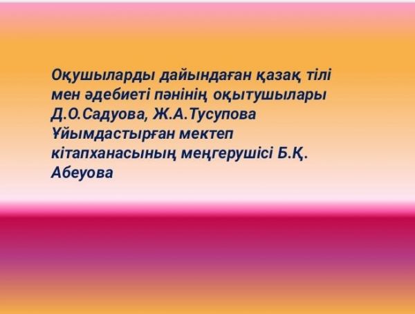 23 сәуір Дүниежүзілік кітап және авторлық құқықты қорғау күніне орай және Абай Құнанбайұлының 175 жылдығына орай 17 орта мектеп оқушыларының арасында "Масғұт" поэмасын "дауыстап оқу&q…
