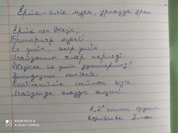 2 Ә сынып оқушылары Кожанова Азиза және Сейфолла Еркеназ Абай Құнанбайұлының 175 жылдығы аясында өткен республикалық "Абай әлемі" онлайн байқауына қатысып, Абай шығармашылығын насиха…