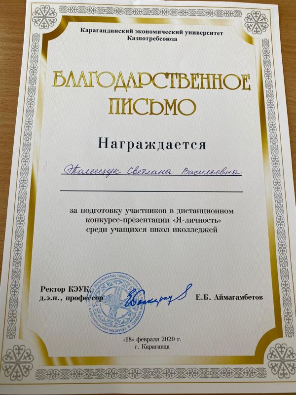 Поздравляем ученицу 10 А класса Епишко Александру, завоевавшую гран-при с танцем "Девицы" в Республиканском конкурсе детского и юношеского творчества, который прошел в г. Караганде в центр…