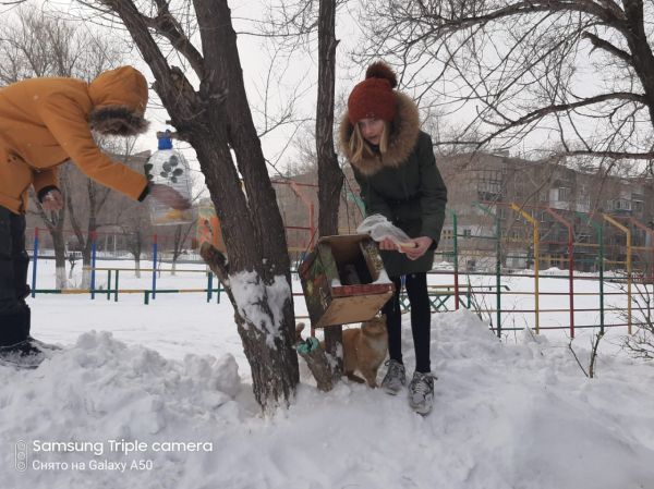 Экочеллендж "Покормите птиц зимой", который проходит в СОШ №17, продолжили ученики 7 Б класса (кл.рук. Перетятько С.Б.). Они вышли с кормом для пернатых на школьный двор и микрорайон Восто…