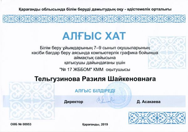 2019 жылдың 14 желтоқсанында Қарағанды қаласының «№ 17 ЖББОМ» ҚР БҒМ 26.11.2019 жылы бекітілген № 509 бұйрығы жайында педкеңес өткізілді. Кеңесте ОІ меңгерушісі Ж.Ж. Оспановамен бұйрықта…