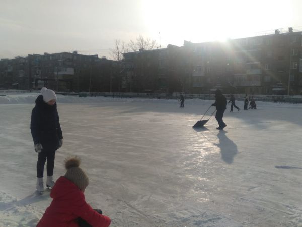 Не пустует школьный двор КГУ СОШ №17 в дни зимних школьных каникул. Каток, горка и ледяные фигуры привлекают детей всего микрорайона Восток 2