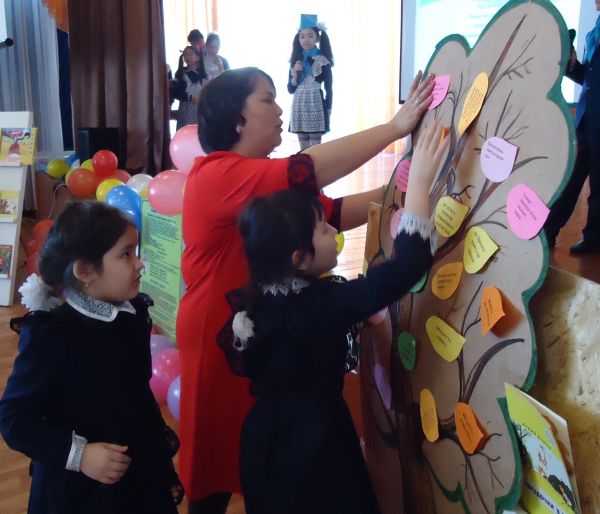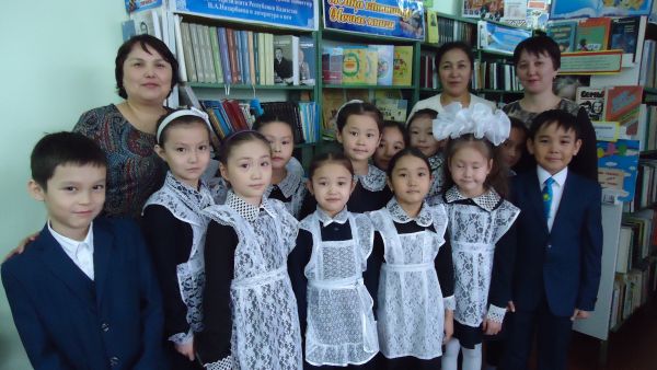 Бүгін 10.02 2016 жылы мектеп кітапханасында орыс және қазақ тілінде оқитын бірінші сынып оқушыларын кіт…