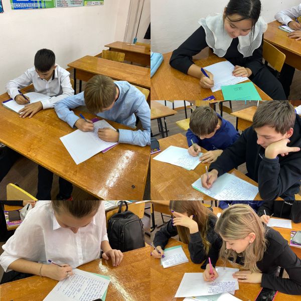 В рамках мероприятий, посвящённых Дню Республики Казахстан и с целью воспитания любви к Родине и патриотизма, учащиеся 9- 11 "А" классов написали диктант "Мой Казахстан"