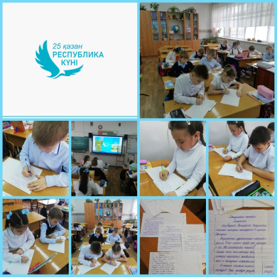 Учащиеся 3В класса написали диктант посвящённый Дню Республики Казахстан.