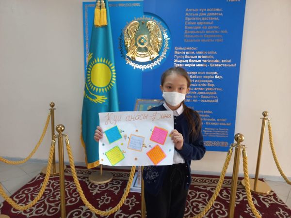 5 "Ә" сынып оқушысы Әлімбай Ақниеттін "Тарих толқынында" атты тарих апталығы аясында орындалған "Күй анасы - Дина" тақырыбындағы шағын жобасы