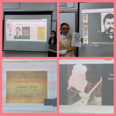 "Тарих толқынында" тарих апталығы аясында 8 "А"-сыныбында "Әлихан Бөкейханов - ұлы халықтың ұлы перзенті " тақырыбында сынып сағаты өтті