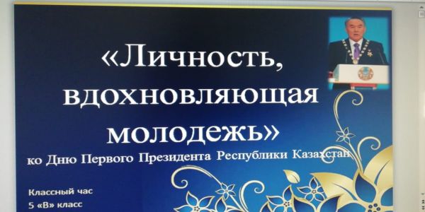 27 ноября в 9 "Б" классе прошёл классный час к дню Первого Президента Республики Казахстан на тему "Личность, вдохновляющая молодежь". Учащиеся расширили знания о лидере ка…