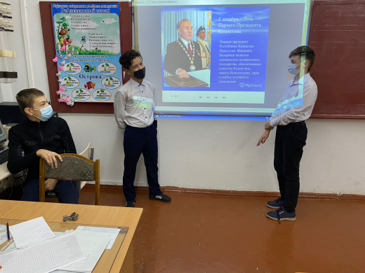 В преддверии Дня Первого Президента РК в школе проходят классные часы, круглые столы, викторины, посвященные личности Елбасы.