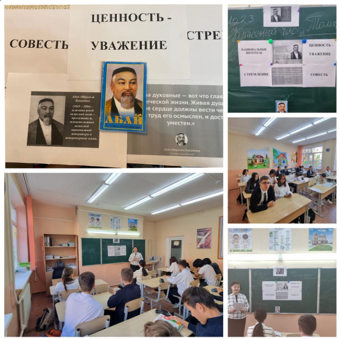 16.10.2023г. в 9 "Г" классе проведен классный час на тему "Толық адам" (концепция Абая Кунанбаева).
