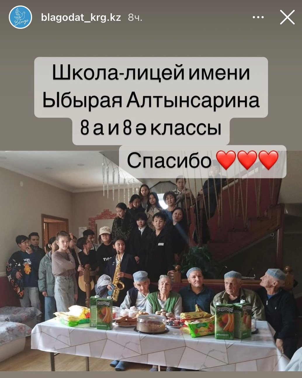 2023 жылдың 28 қыркүйегінде қарттар күніне орай 8 А және 8 Ә сыныптары қарттар үйіне барып, шағын концерт көрсетіп қайтты.