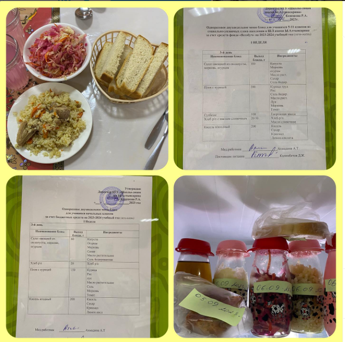Мәзір 1-4 сыныптар, 5-11 сынып оқушылары халықтың әлеуметтік осал топтары.