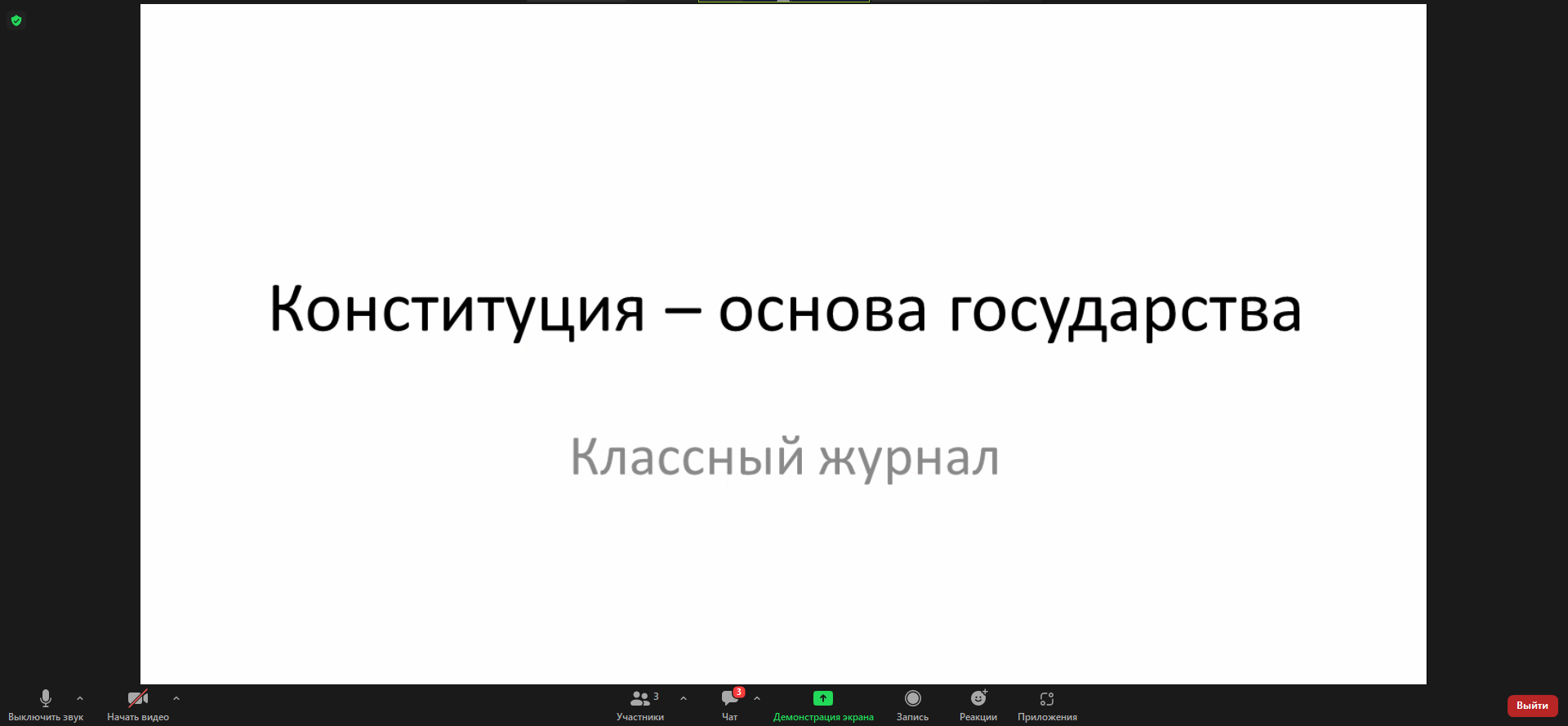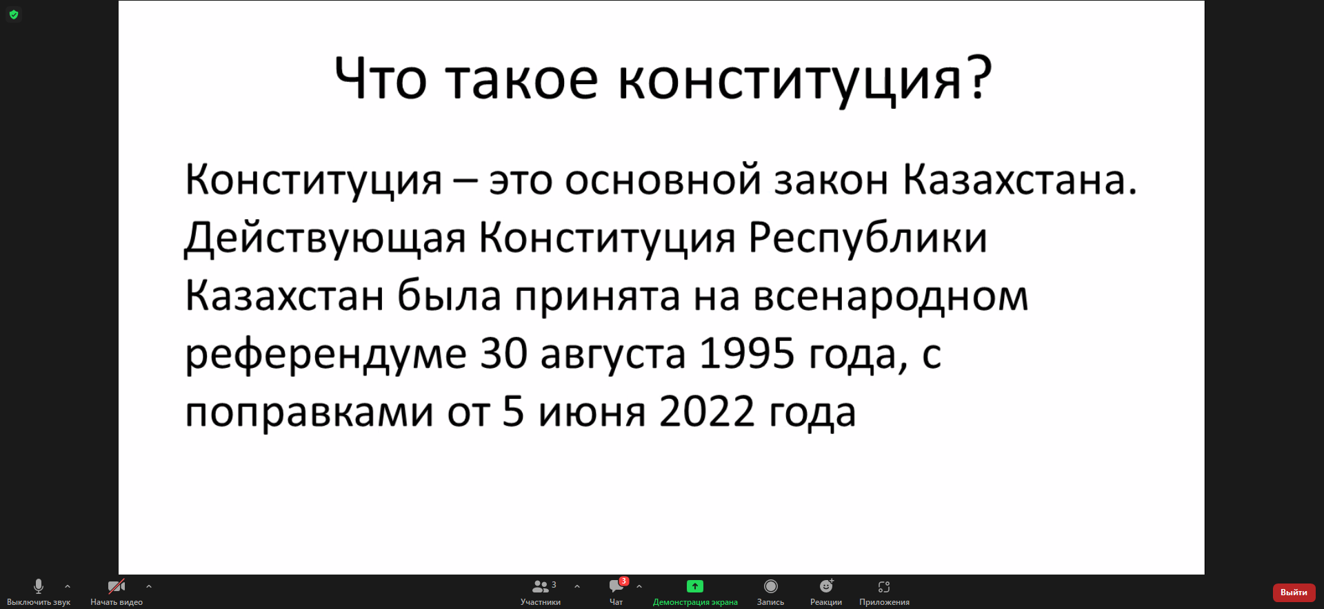 29 августа 2023 г в 5 «Л» классе проведен на платформе ZOOM устный журнал по теме: «Конституция-основной государства».