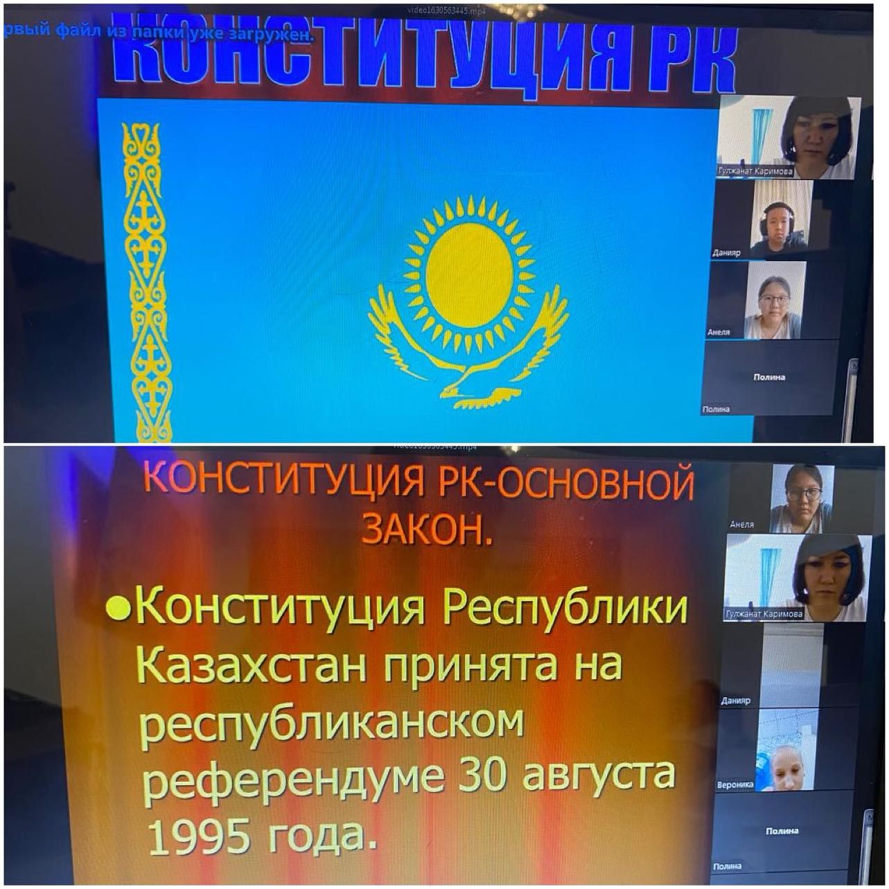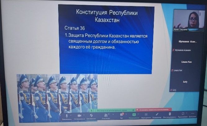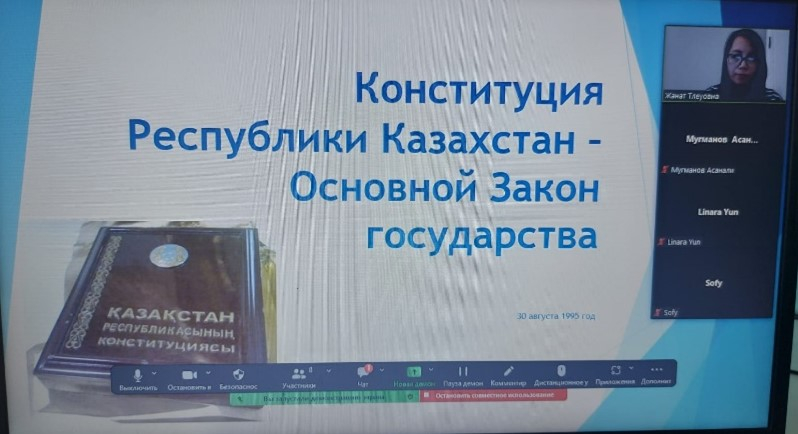 6 «Д» сыныбында 29 тамыз күні сағат 12:00-де ZOOM жүйесінде «Конституция-басты мемлекет» атты ауызша журнал жүргізілді. Мақсаты: Жеке адамның конституциялық құқықт…