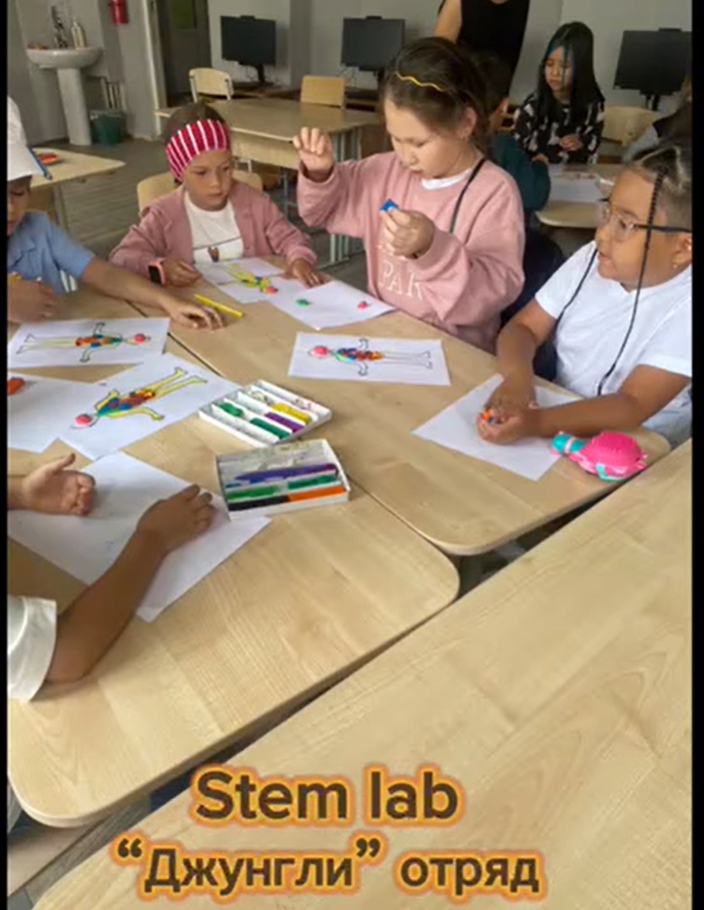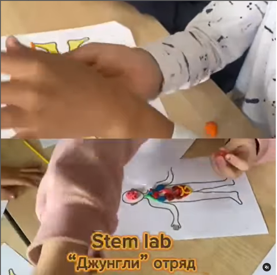Бүгін "Джунгли" отрядының балалары "STEAM " лабораториясында пластелиннен адам ағзасын жасау арқылы дене құрылысын таныды.