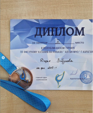 Поздравляем ученицу 2 Ж класса Зибунову Дарью с победой в Республиканском Турнире по фигурному катанию на коньках.