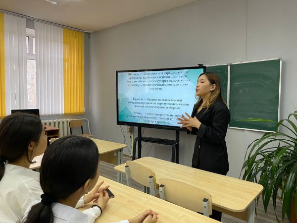 2023 жылдың 17 сәуірінде 7 "Ә" сыныбында "Денсаулыққа зиянды әрекеттер" (электронды шылымның зияны) тақырыбында денсаулық құндылығына арналған және "Қорқытудың, буллингтің а…
