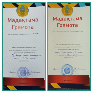 "Біздің айналамыздағы математика" атты математикалық сауаттылық апталығына орай 23.01-27.01.2023ж.аралығында өткізілген сурет байқауында "Ең белсенді сынып" номенациясын алған 5…
