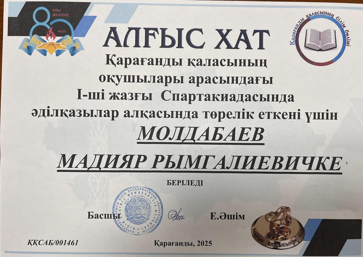 Санак Санжар 9 «Ә» сынып оқушысы 1-орын