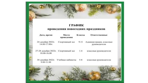 График проведения новогодних праздников
