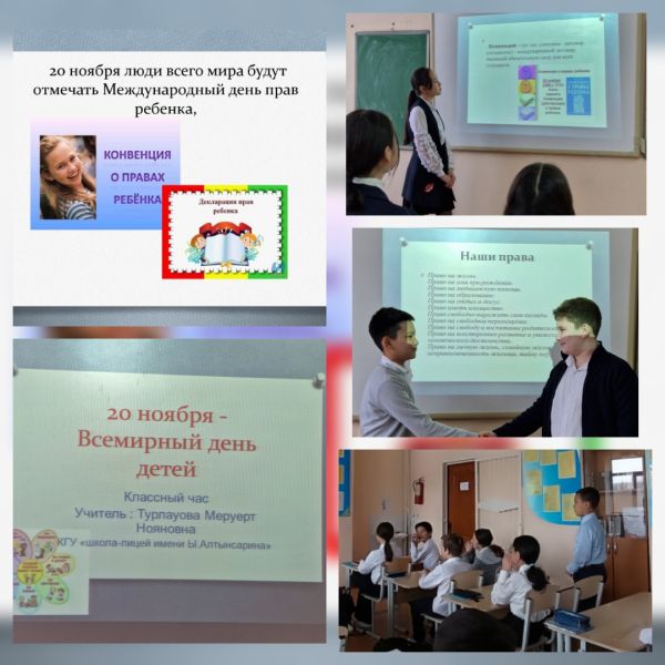 5Г сыныбында "Бала құқығы-адам құқығы" тақырыбында сынып сағаты өтті. Сынып жетекшісі:Адамбаева А.С.