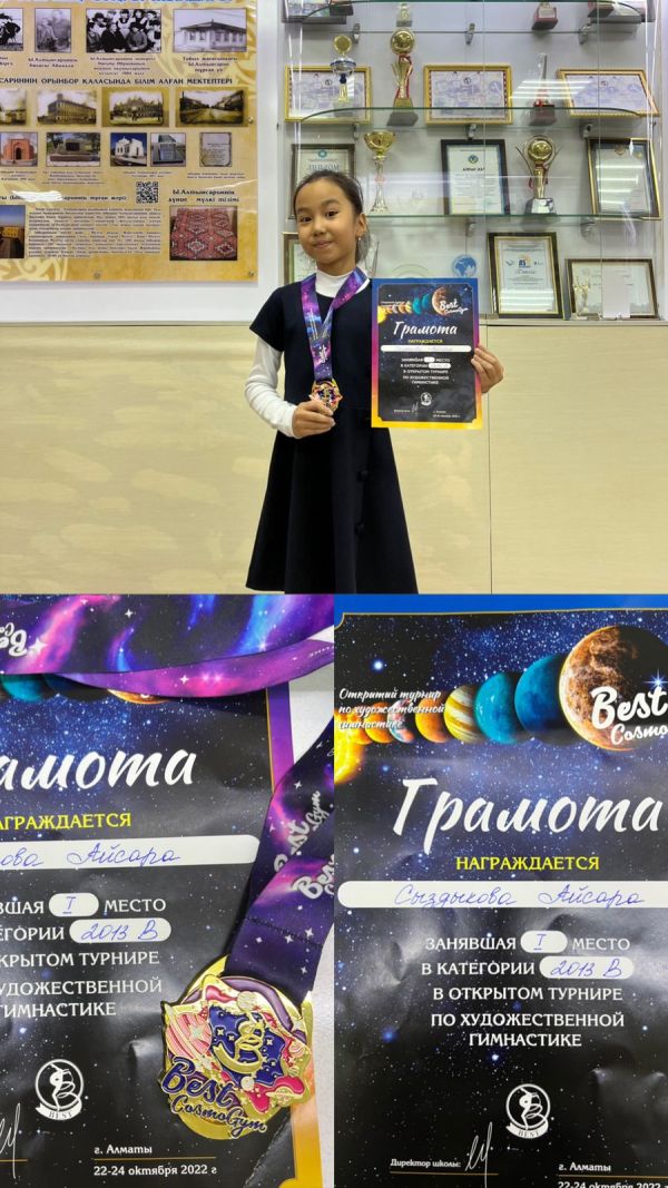 Алматы қаласында өткен көркем гимнастикадан жарысқа 4 “Б” сынып оқушысы Сыздыкова Айсара қатысып, 1 орын иеленді. Құттықтаймыз!