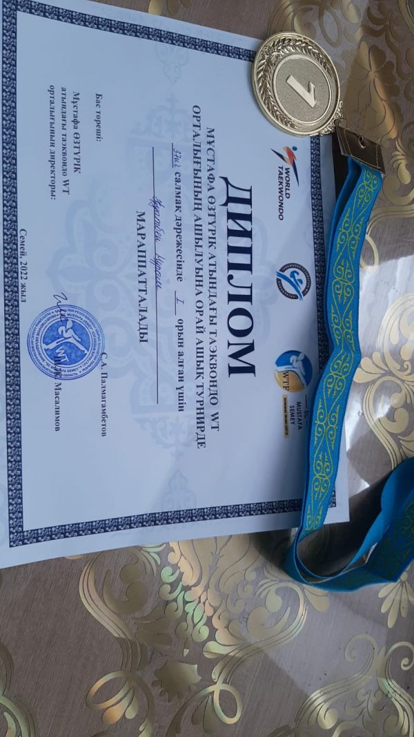 Семей қаласында өткен Мұстафа ӨЗТҮРІК атындағы Таэквондо WTорталығының ашылуына орай ұйымдастырылған турнирде 32 кг салмақ дәрежесінде І орын алған  3 ә сынып оқушысы Қуатбек Нұрымды  құтт…