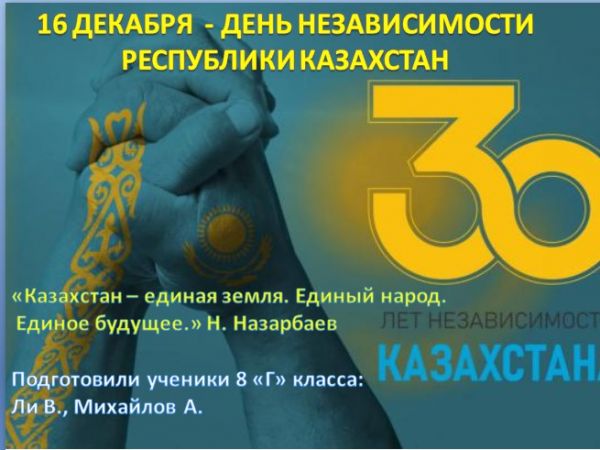 Классный час, посвященный 30-летию Независимости Республики Казахстан, был проведен в 8 «Г» классе. Подготовили и провели классный час и блиц-турнир среди одноклассников Вадим Ли и Артем…