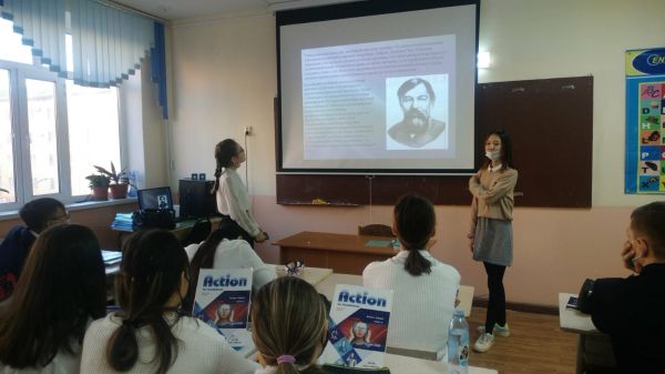 18 октября 2021 года прошел классный час в 10 Б классе по теме: «Празднование 180-летия великого просветителя Ыбырая Алтынсарина». Ибраева Аружан и Исаева Дильназ поделились информац…