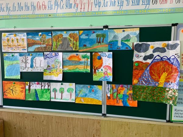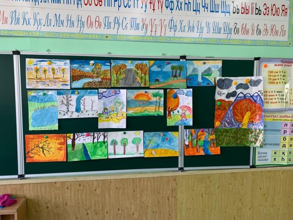 Шеберлер әлеміне саяхат атты эстетикалық сауаттылығы апталығының аясында «Қылқалам шеберлері» суретшілер байқауына 3Ә сынып оқушылары арасында өткен байқау нәтижесінде ең үздік жұмыстард…