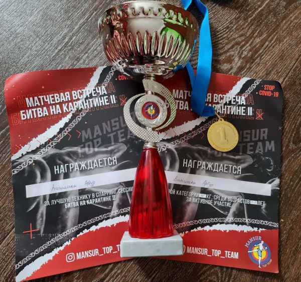 Артур Василаки, ученик 7 Г класса, занял 1 место за лучшую технику в спарринг сессии в Матчевой встрече.