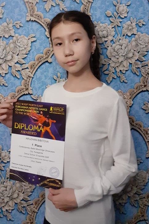 Бибетова Аружан, ученица 7 Г класса, участвовала в Северо-Восточном Евроазиатском чемпионате по артистическому танцу в составе ансамбля DAR, где они заняли 1 место.