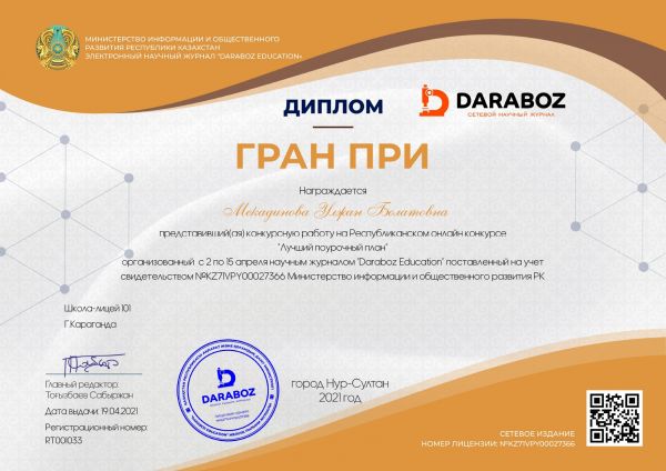 Научным журналом "Daraboz Education" были организованы и проведены Республиканские конкурсы. Цели данных конкурсов направлены на выявление и развитие у обучающихся интеллектуальных и твор…
