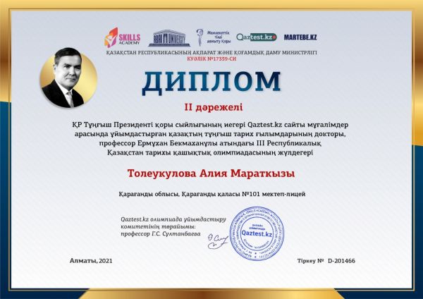 Қазақстан Республикасы  Тұңғыш Президенті қоры сыйлығының иегері, үздік қазақ тілді білім сайты – Qaztest.kz Тұңғыш тарих ғылымдарының докторы, профессор, ҚазКСР ҒА-ның корреспондент-мүше…