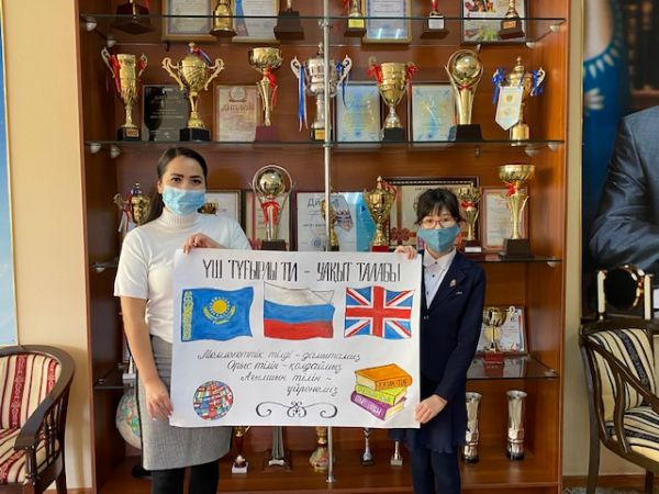 В рамках проекта «Трёхъязычие в моей школе» ученица 5 «Е» класса Тажбаева Айсана нарисовала плакат. Учитель английского языка: Мекадинова У.Б.