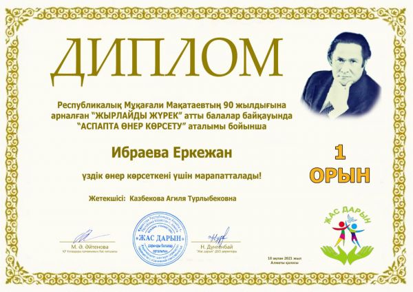 Поздравляем ученицу 3 Д класса Ибраеву Еркежан  за занятое 1 место в Республиканском музыкальном конкурсе в жанре  игра на фортепиано. Конкурс состоялся в городе А…