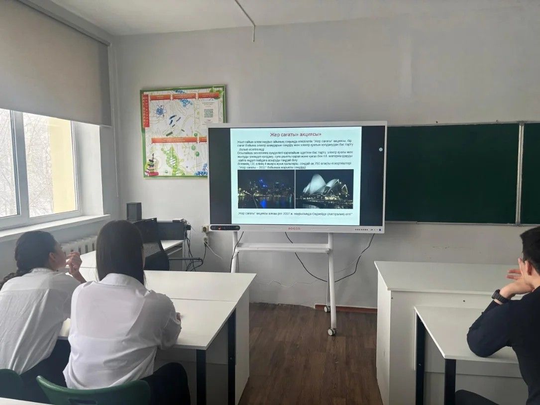 16.03 күні 11 “ә” сыныбында «Жер сағаты: жаһандық бастама» тақырыбында сынып сағаты өтті.