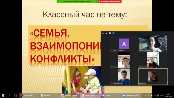 15.02.21. в режиме онлайн в 11Б классе был проведен классный час “Семья: взаимоотношения и конфликты” Цель: формирование у учащихся уважительного отношения к семье, родителям и однокла…