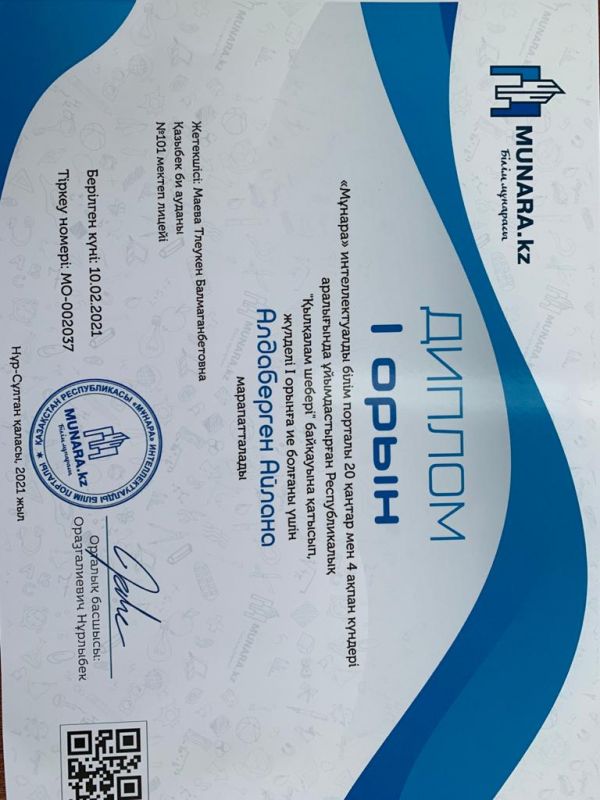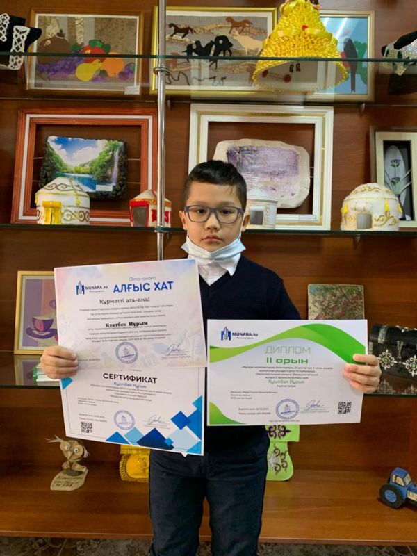 «Мұнар» интелектуалды білім порталы 20 қаңтар мен 4 ақпан күндері аралығында ұйымдастырылған Республикалық байқауға 2 ә сынып оқушылары қатысып жүлделі орындарға ие болды. Талаптар…