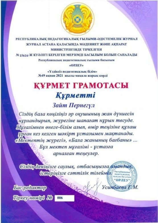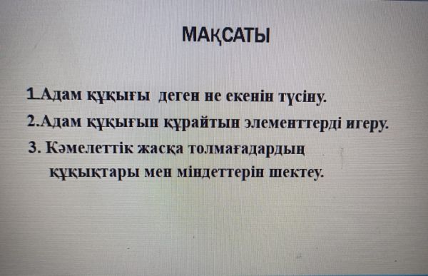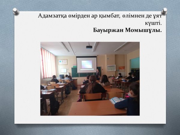 2021 жылдың 11 ақпанында «Құқықтық сауаттылық»апталығының ашылуы өтті.Осыған орай, 5-сыныптардың арасында «Менің құқығым және менің отбасымдағы міндеттерім» тақырыбындағы жоб…