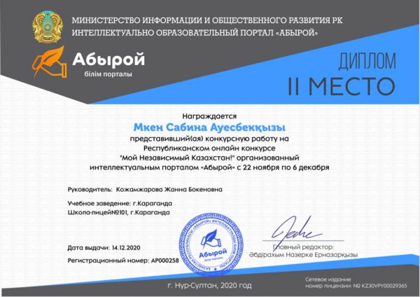 По итогам Республиканского онлайн конкурса «Мой Независимый Казахстан»