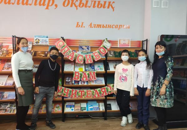 №101 мектеп-лицейінің 5 «З» сынып оқушылары ұстаздарын құттықтау үшін кітапхана медиацентрге келді
