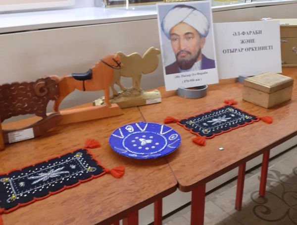 К знаменательной дате 1150 летия со дня рождения Әл-Фараби организована выставка декоративно прикладного искусства «Әл-Фараби және Отырар өркениеті». Выстав…